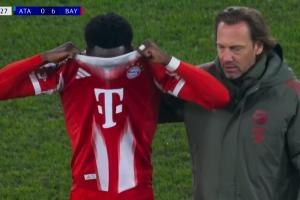 體育資訊03月11日訊 拜仁vs亞特蘭大第70分鐘,阿方索無對抗情況下受傷!直接下場了!鏡頭拍到阿方索很難過要哭了的表情!