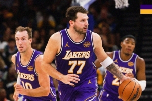 賽后,湖人官方發(fā)布贏球海報,封面人物為東契奇和肯納德。