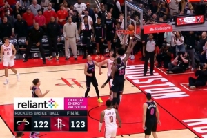 體育資訊3月22日訊 NBA常規(guī)賽,火箭123-122險(xiǎn)勝熱火。阿門(mén)最后補(bǔ)籃絕殺。
