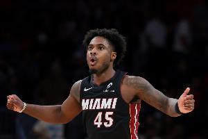 本場比賽,熱火后衛(wèi)戴維恩·米切爾出場37分鐘15投6中,三分10中3拿到15分1籃板9助攻2搶斷,正負值+8。
