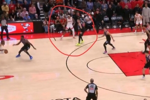 火箭主場123-122險勝熱火,最后一攻阿門補籃絕殺,在他發(fā)邊線球之后是希羅和他對位,但希羅注意力一直在持球的杜蘭特這邊,完全漏掉了偷偷跑到籃下的阿門。