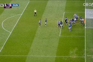 體育資訊03月22日訊 英超第31輪,紐卡vs 桑德蘭。比賽第75分鐘,紐卡角球佳夫頭球破門,但因門前有干擾門將被主裁判吹掉。