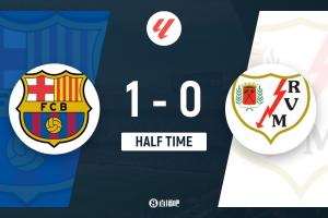 上半場(chǎng)補(bǔ)時(shí)3分鐘,巴薩1-0巴列卡諾。
