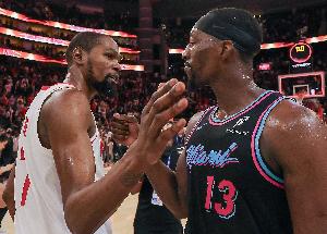 體育資訊3月23日訊 NBA常規(guī)賽,火箭123-122力克熱火。杜蘭特生涯總得分超越喬丹,上升至NBA歷史第五。
