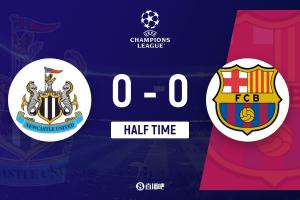 上半場傷停補時1分鐘,半場結(jié)束,巴薩暫0-0紐卡。