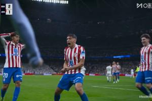 體育資訊03月23日訊 皇馬vs馬競(jìng)第66分鐘,莫利納世界波,此時(shí)比分變?yōu)榛蜀R2-2馬競(jìng)!