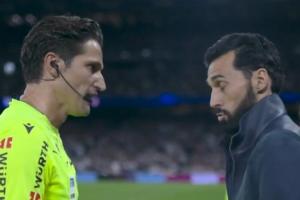 轉(zhuǎn)播方DAZN捕捉到了賽后皇馬主帥阿韋洛亞走上前向主裁判表達不滿,二人之間的對話。