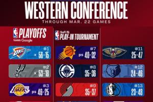 2.西部第五的掘金、第六的森林狼以及第七的太陽(yáng)今日相繼贏球,其中掘金與森林狼的戰(zhàn)績(jī)繼續(xù)持平(同為44勝28負(fù),掘金因交手戰(zhàn)績(jī)占優(yōu)排名靠前)。