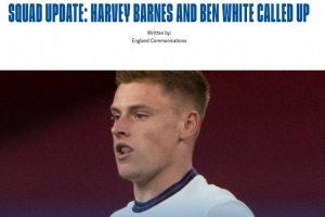 28歲的哈維·巴恩斯此前在2020年代表英格蘭隊(duì)有過(guò)1次出場(chǎng),28歲的本·懷特曾有過(guò)4次出場(chǎng),這也是自2022年入選英格蘭世界杯名單后,時(shí)隔近4年這名球員重返英格蘭隊(duì)。
