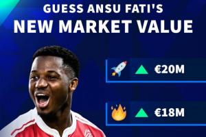 本賽季法蒂在摩納哥出場(chǎng)23次,打進(jìn)9球。法蒂的身價(jià)在17-18歲時(shí)(2020-2021年)曾達(dá)到8000萬歐。