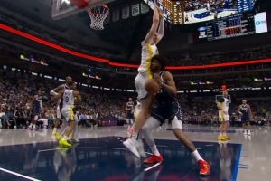 GIF-波爾津吉斯籃下被巴格利撞了一下