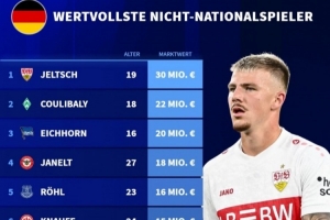 體育資訊3月24日訊 德國轉(zhuǎn)會市場統(tǒng)計了從未入選德國隊名單的球員身價,并列出榜單。