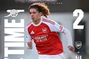 在阿森納U18梯隊2-2戰(zhàn)平富勒姆U18的比賽中,穆尼奧斯第78分鐘替補登場,第93分鐘禁區(qū)右側接球大力轟門攻入絕平球。