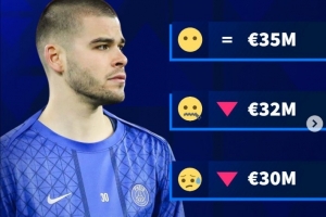 體育資訊3月25日訊 德國轉(zhuǎn)會市場曬照,預(yù)熱巴黎門將舍瓦利耶的身價,四種方案的三種都是身價下調(diào)。