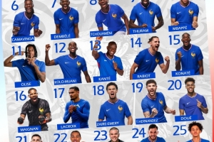體育資訊3月25日訊 法國隊公布了本期國家隊球員號碼,圖拉姆9號、姆巴佩10號、登貝萊7號。
