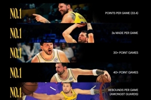 體育資訊3月25日訊 今天,湖人官方曬出了東契奇的幾項(xiàng)數(shù)據(jù)記錄,并寫道:“數(shù)據(jù)不會(huì)說(shuō)謊?!痹斍槿缦拢?/p>