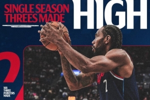 本場比賽過后,倫納德單賽季已經(jīng)命中149記三分,創(chuàng)個人生涯新紀錄(此前紀錄為2016-17賽季的147記)。