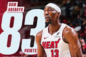 體育資訊03月12日訊 熱火主場150-129大勝奇才,阿德巴約狂轟83分創(chuàng)歷史單場第二高分。