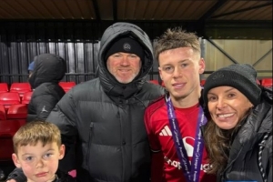 現(xiàn)年16歲的凱·魯尼目前效力曼聯(lián)U16隊,他幫助球隊在英超聯(lián)賽盾杯決賽中2-0戰(zhàn)勝伯恩利奪冠,魯尼與妻子科琳現(xiàn)場觀戰(zhàn)。