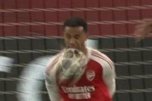 體育資訊03月12日訊 歐冠1/8決賽首回合,阿森納客戰(zhàn)勒沃庫森,第22分鐘,加布里埃爾用臉擋住對手射門。