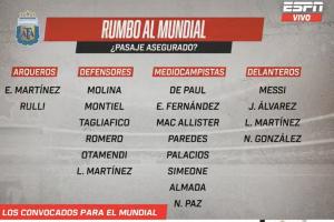 體育資訊03月26日訊 據(jù)ESPN阿根廷版報(bào)道,阿根廷世界杯名單中已有20名球員鎖定席位,剩余的6個(gè)名額將由16名球員爭(zhēng)奪。