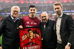 體育資訊3月12日訊 在勒沃庫森主場迎戰(zhàn)阿森納的歐冠比賽前,勒沃庫森為哈弗茨準備了歡迎儀式。