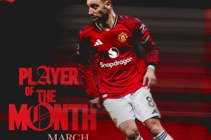 體育資訊3月27日訊 曼聯(lián)官方宣布,B費當選3月份隊內(nèi)最佳球員。