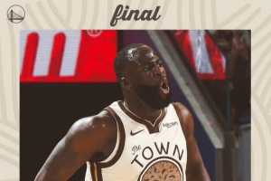 賽后,勇士官方發(fā)布贏球海報(bào),封面為追夢(mèng)怒吼瞬間。