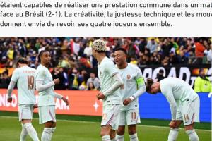 體育資訊03月28日訊 法國隊(duì)在友誼賽中2-1擊敗巴西隊(duì),法媒《隊(duì)報(bào)》撰寫文章,分析了法國隊(duì)目前的前場(chǎng)四人組,即姆巴佩-?;倏?奧利塞-登貝萊的組合,這四人創(chuàng)造力十足,并且優(yōu)勢(shì)互補(bǔ)。文章內(nèi)容如下: