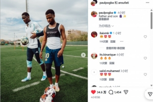 博格巴搞怪地寫道:“父與子?!?/p>