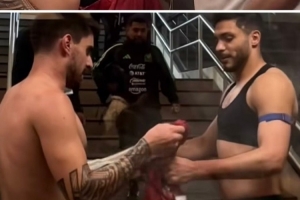 比賽結(jié)束之后,勞爾·希門尼斯與魯本·內(nèi)維斯互換球衣,兩人曾在狼隊(duì)共事