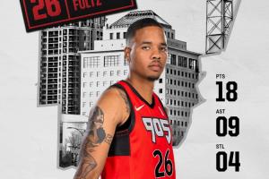 此役,2017年狀元郎、猛龍10天合同后衛(wèi)富爾茨為猛龍905出戰(zhàn),他表現(xiàn)出色,單場上陣27分鐘12投7中,三分3中2、罰球1中1,拿下18分2籃板9助攻4搶斷,得分、助攻和搶斷創(chuàng)個人G聯(lián)盟生涯新高,正負值高達+34和隊友AJ·勞森并列全場最高。