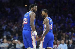 復(fù)出之后的兩場比賽,恩比德場均出戰(zhàn)32分鐘,得到32分6籃板4.5助攻1.5蓋帽,投籃命中率55.6%,三分命中率66.7%,罰球命中率81.8%。喬治自禁賽歸來的兩場比賽,場均砍下27分9.5籃板3助攻4搶斷,投籃命中率48.7%,三分命中率41.6%(24中10)。