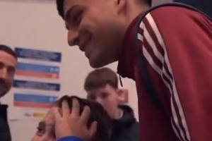 ESPN曬出視頻,正隨西班牙征戰(zhàn)的巴薩中場(chǎng)佩德里贏得了球迷們的廣泛歡迎,在他與球迷見(jiàn)面時(shí),一名小球迷看到自己的偶像甚至激動(dòng)地哭了出來(lái)。佩德里也親切地與他交談并合影。