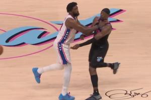 恩比德不慎掐到阿德巴約喉嚨 裁判吹罰為普通犯規(guī)