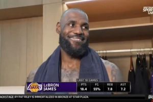 體育資訊3月31日訊 NBA常規(guī)賽,湖人隊(duì)120-101戰(zhàn)勝奇才隊(duì)。賽后,詹姆斯接受了采訪。以下為完整版。
