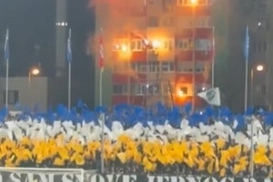 本場(chǎng)比賽在波黑的主場(chǎng)進(jìn)行,在球場(chǎng)附近的建筑物內(nèi),熱情的球迷燃放焰火和煙花為國(guó)家隊(duì)加油助威。