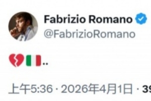 賽后,意大利名記羅馬諾發(fā)布社交媒體,心碎的表情配上意大利國(guó)旗。