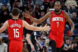 第三節(jié),火箭攻防兩端仍占據(jù)主動(dòng),杜蘭特延續(xù)火力壓制對(duì)手反撲,單節(jié)火箭29-22凈勝尼克斯7分,三節(jié)打完握有20分優(yōu)勢(shì)。