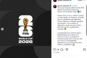體育資訊3月12日訊 國(guó)際足聯(lián)主席因凡蒂諾社媒發(fā)文,對(duì)即將首次亮相世界杯的國(guó)家隊(duì)表示祝賀。