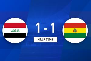 上半場補時5分鐘,伊拉克1-1玻利維亞。