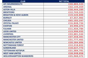 英超各隊(duì)支付給經(jīng)紀(jì)人的傭金↓
