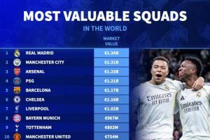全球身價(jià)最高二十隊(duì):