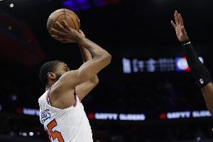 尼克斯球員布里奇斯上半場手感火熱,他專注得分,除了得分以外其他數(shù)據(jù)沒有進賬。