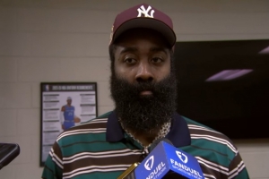 全場(chǎng)比賽,哈登出戰(zhàn)37分鐘,16投11中,三分9中5,罰球5中3,空砍30分6籃板8助攻,出現(xiàn)4失誤。