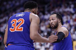 本場(chǎng)比賽,尼克斯多點(diǎn)開(kāi)花,4人得分20+,其中布倫森28分,克拉克森27分,阿努諾比22分,唐斯21分。