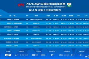 體育資訊04月03日訊 中國足協(xié)公布中超第4輪裁判安排,本輪中超裁判仍無麥麥提江和唐順齊。