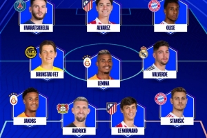 體育資訊3月13日訊 歐冠1/8決賽首回合已經(jīng)結(jié)束了全部的爭奪,歐足聯(lián)官方評選出了周最佳陣,K77、小蜘蛛、奧利塞組成進(jìn)攻三叉戟,巴爾韋德、庫爾圖瓦在列。