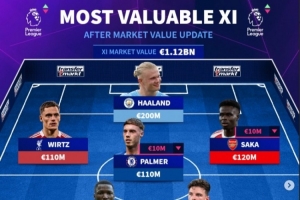 德轉(zhuǎn)英超身價最貴陣(總身價11.2億歐)