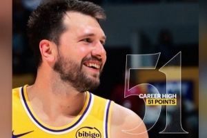 本場比賽,東契奇得到了湖人生涯新高的51分,里夫斯則突破生涯5000分里程碑。